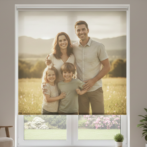 Рулонные шторы с семейным портретом - это уникальное решение, которое делает интерьер по-настоящему личным и тёплым. Индивидуальный принт превращает окно в особый акцент, наполняя пространство воспоминаниями и эмоциями.
